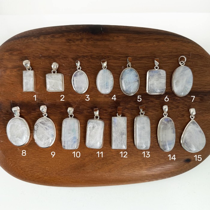 - Colgante de piedra luna arcoíris montado en plata